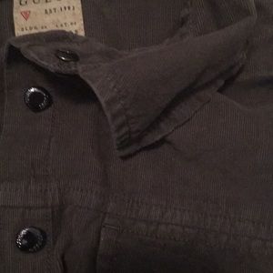 Olive green GUESS button up shirt. Super soft to touch. Buttons are snap buttons. Thin corduroy-like material