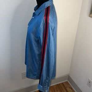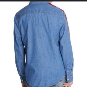 GUESS denim regular fit buttoned down men’s shirt Sz M red blue striped sleeves