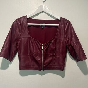 GUESS maroon pleather zip-up crop top Size Small EUC