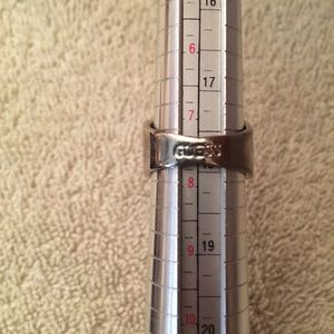 Great silver-toned fashion ring with 20 different stones ranging from light green to light peach to diamond-like... They are all intact and they catch the light beautifully. Nice thick band. Very comfortable and smooth. Excellent condition. Very minor scratches on metal. GUESS stamped on the back of the band. Size 7.5