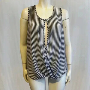 GUESS sleeveless striped infinity open back tank top black and white medium