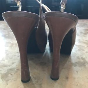 Sizing: True to size. M=standard with. Open toe. Toe strap vamp. Adjustable ankle strap with buckle closure. Lightly padded footbed. Stiletto heel. Approx. 5" heel, 1" platform.