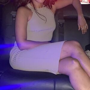 GUESS stretchy top and midi skirt set in taupe (like new, worn once)