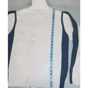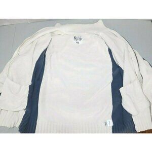 Size runs small, more like an XL. Sweater is in excellent condition except for a couple very light marks you can't see in pictures.