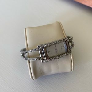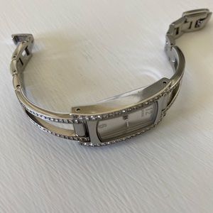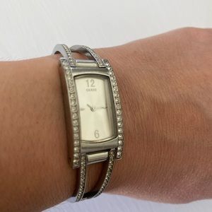 GUESS watch that is very feminine and pretty. Lots of crystals all around.