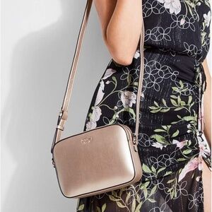 For that lady always on the go, the GUESS® Kamryn Crossbody Top Zip handbag will get you there organized! Faux-leather construction. Zipper closure. Adjustable crossbody strap. Exterior boasts brand detail. Flat bottom. Lined interior features a wall zipper pocket and two credit card slots. Imported. Measurements: Bottom Width: 8 3⁄4 in Depth: 2 1⁄4 in Height: 6 1⁄4 in Strap Length: 55 in Strap Drop: 24 3⁄4 in Weight: 15.2 oz