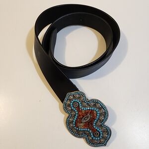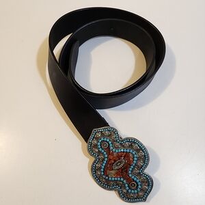 GUESS women's black Bohemian embelished leather belt with metal backle M