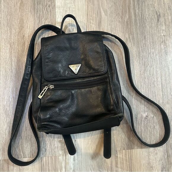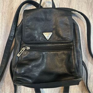 GUESS Back Pack Vintage Mini Leather Zip Pocket Black Travel Festival Y2K