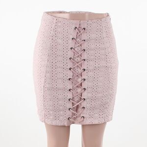 Sweet eyelet with sultry corset lacing. Oh yes, this mini skirt from Guess blends both for a bold look.