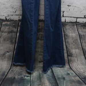 BLUE DENIM FLARE LEG ADJUSTABLE STRAP TIE WAIST SIDE ZIP WITH POCKETS RAW HEM SAILOR JUMPSUIT OVERALLS SIZE 0 PRE OWNED NO FLAWS