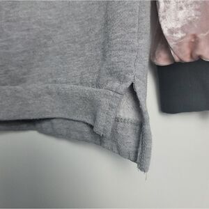 Guess girls sweater with Guess embellishments and pink velvet like sleeves and black trim