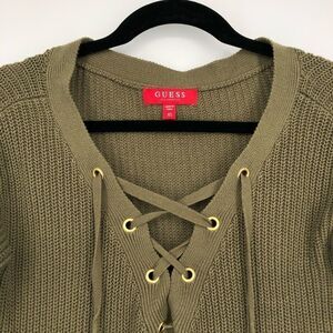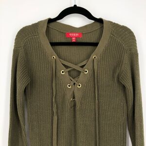 Guess Khloe Lace-Up Sweater in Green. Size womens Extra Small.