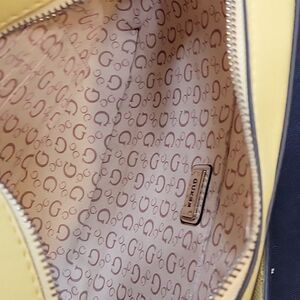 GUESS LADIES RODNEY CAMERA CROSSBODY/SHOULDER BAG COLOR YELLOW. MADE WITH MATERIAL/MEASUREMENTSAPPROX: PL: 22 W: 5.5 H: 15 CM Product care labels should not be stored near heat or exposed to the sun. If stains or stains occur, use a damp cloth wipe or use in conjunction with Sdeclean products, gently rub and wipe clean. PU area and then wipe with a clean cloth again. but do not use it to clean The area is suede. THIS ITEMS IS PRE-OWNED EXCELLENT CONDITION YOU MIGHT MISTAKE FOR NEW CHECK THE PICTURES