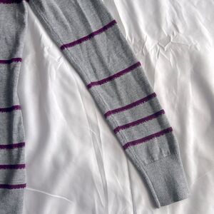 GUESS Vintage Y2K Vibes Grey Purple Glitter Stripe Bling Graphic Sweater…