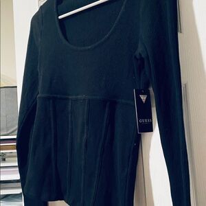 Size Small | Black | Scoop neckline | Ribbed texture throughout; seam detail below bust | 92% Cotton/8% Spandex.