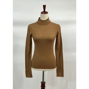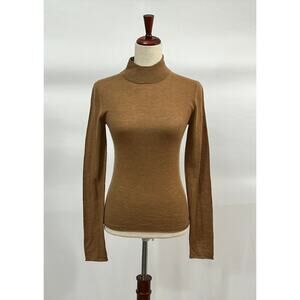 Women's sweater by GUEST IN RESIDENCE. Size S Small. 100% cashmere base layer turtleneck sweater. Thinner knit, great for layering. Almond, a light brown/tan color. Good condition, no stains, holes or pilling. Was new with tags, however the tag pulled off somehow and label at neck came off at one side. Never found the tag and I did tack the tag back.