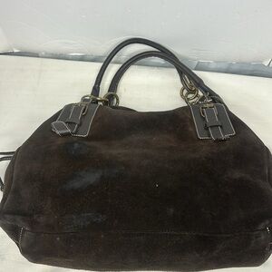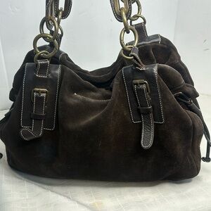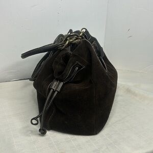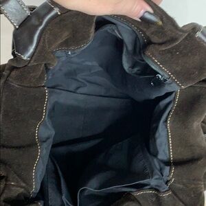 GUIA’S Black Leather Handbag With Silver Hardware . Condition is Pre-owned. This is a great used bag. It has soft genuine suede leather , drawstring top closure, zipper inside pocket, 2 inside extra pockets for small items and is made in Italy.