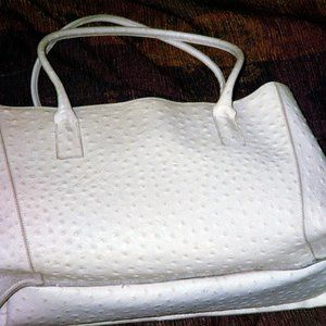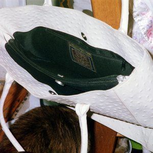 GUIAS Peacock Embossed Leather Ivory Tote Bag