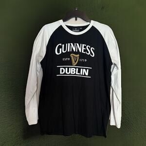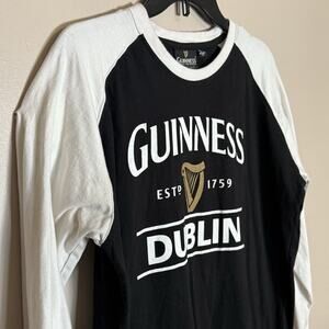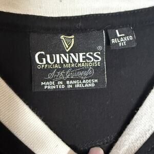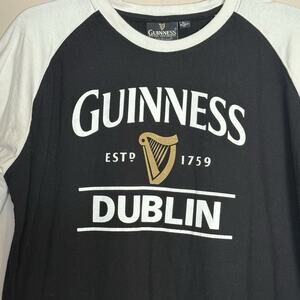 The product is a men's XLarge black and white Guinness Dublin T-shirt with a beer logo, featuring a crew neck and long sleeves. Made from cotton knit fabric, this easy-care and breathable T-shirt is machine washable and suitable for all seasons. With a regular fit and a limited edition graphic print, it is perfect for beer enthusiasts looking for a stylish and comfortable shirt for any occasion. Made in Bangladesh, this T-shirt is a must-have for fans of the Guinness brand.