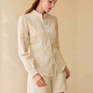 GUIPURE LACE BUTTON UP BLOUSE,SPRING/SUMMER