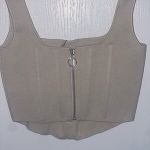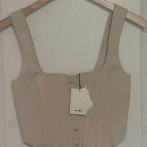 GUIZIO Danielle GUIZIO Cream Tan Knit Ribbed Button-Front Corset Top Zip Back XL