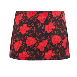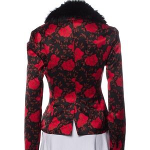 GUIZIO Murada Faux Black Fur Blazer Peonia Print Red Satin Silky Matching Skirt