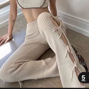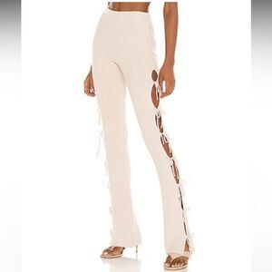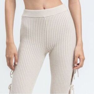 GUIZIO Rib Knit Tie Pant in Light Oat Small Revolve Cashmere
