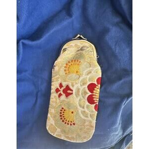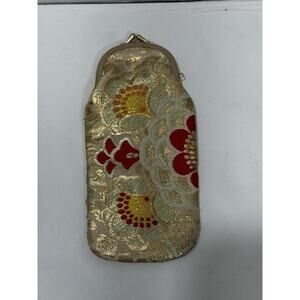 GUMPS San Francisco Silk Coin Purse Bag Purse 7” Gold Red Gorgeous Super Rare
