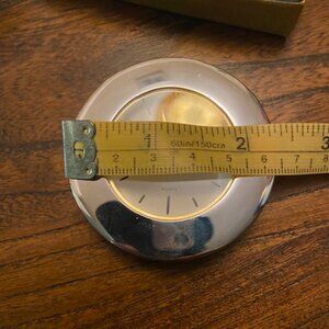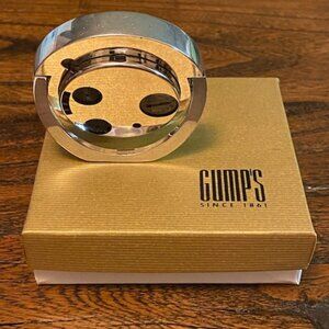 GUMPS Silver Travel Analog Alarm Clock Brand New in Box. In perfect condition, never used. Still in the original box. Quartz movement. Very sleek and chunky. Measures 2.25 inches.