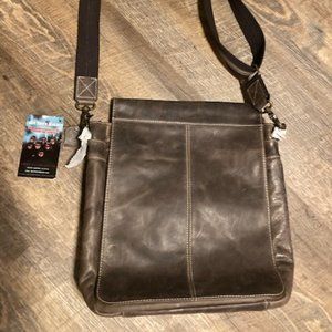 GUN TOTE'N MAMAS Brown leather concealed carry messenger bag