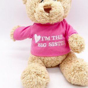 GUND Brown Teddy Bear Plush I'm the Big Sister Pink Shirt Stuffed Animal Toy 12”