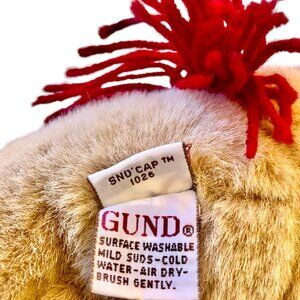 GUND Teddy Bear - tag reads 'Sno Cap'. Teddy is wearing a scarf and hat with tassel. Tush tags attached.