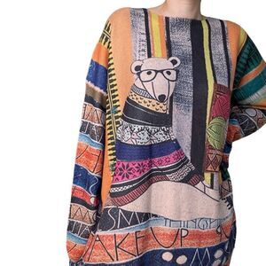 GUNEST Graphic Wearable Art Crewneck Printed Bear Sweater Women Plus Size 3XL