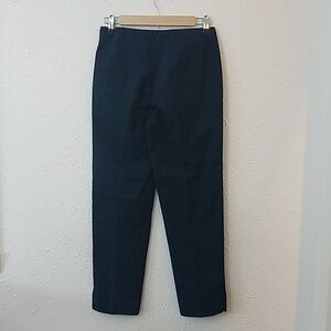 GUNEX Bergdorf Goodman navy dress pants. Sz 4. Made in Italy. Split hem. Zipper in side. Flat front. Excellent condition. Measurements are apx 14" across waist and 9.5" rise and 26" leg inseam.