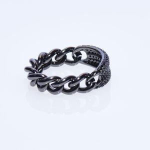 GUNMETAL ARTICULATED CUBAN CHAIN LINK ID RING WITH BLACK MICRO CZs SIGNED NWT