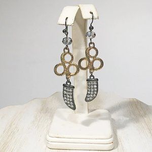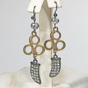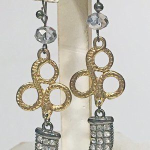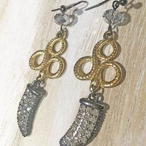 * ITEM: GUNMETAL & GOLD TONE SNAKE ANIMAL STYLE CHANDELIER LONG CRYSTAL EARRINGS 3"