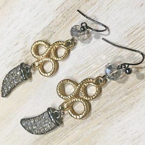 GUNMETAL & GOLD TONE SNAKE ANIMAL STYLE CHANDELIER LONG CRYSTAL EARRINGS 3"