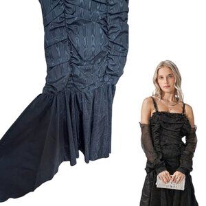 FORMAL, PROM, SPECIAL OCCASION, VINTAGE, BLACK, SEQUINS, WHIMSYGOTH, UNIQUE DRESS, GOTH, PRINCESS, DROP WAIST, RUFFLES, DAMASK