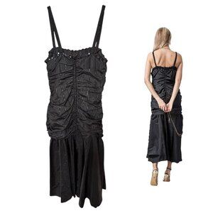 GUNNE SAX VINTAGE BLACK RUCHED CORSET SEQUIN MIDI FORMAL PROM DRESS XS/JUNIOR 7