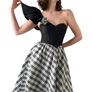 TYPE: ONE SHOULDER PLAID 80’S PROM DRESS