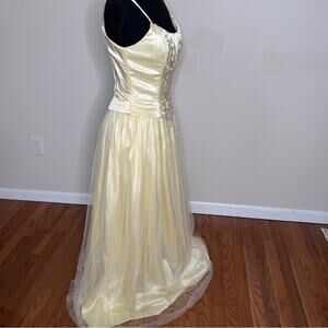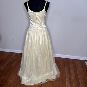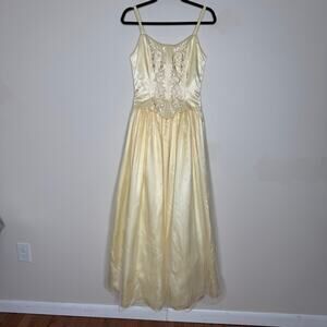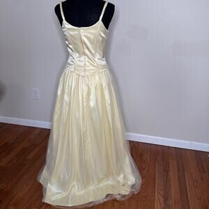 GUNNE SAX VTG 80s Jessica McClintock Corset Gown Embroider Yellow Dress 5/6