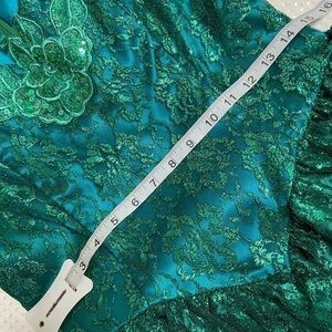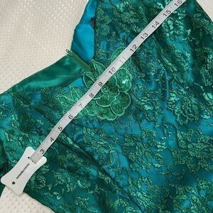 Welcome to the party with the Gunne Sax by Jessica McClintock Green Lace Overlay Party/Prom Dress.