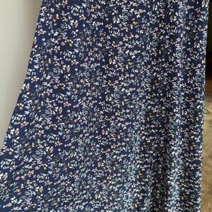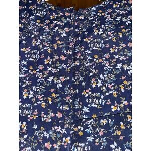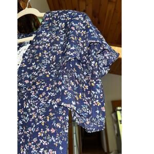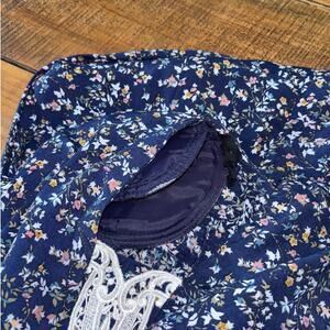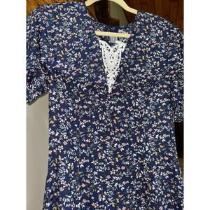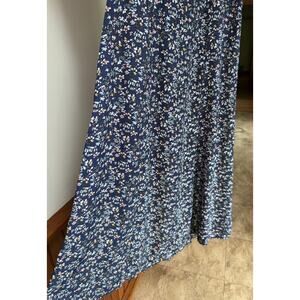GUNNE SAX Womens Navy Blue Floral Long Prairie Cottage Short Sleeve Vtg Dress