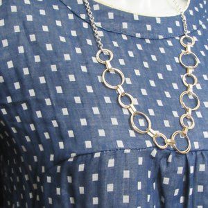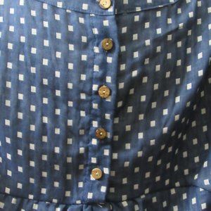 Blue dress with white square prints, Brand New With Tags, Button Detail on the back, WITH POCKETS