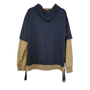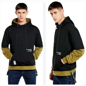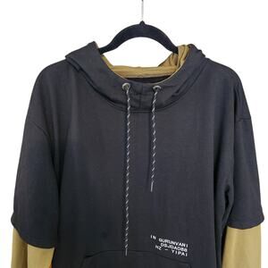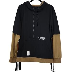 GURUNVANI Contrast Color Pullover Hoodie Olive Green & Black sz large