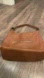 GUSSACI Italian Handbag Purse. 12” wide x 16” tall, with 9” drop strap. Nice cognac color with gold-tone hardware. Vegan leather, has a genuine leather look and feel. Very stylish. Large roomy bag with with an open compartment and two zippered pockets on the outside. Inside is a large center zippered compartment, dividing two large open compartments. Side has zipper compartment and opposite side has two open pockets. Strap has wear on all outer edges. Inside has a few pen marks. Outside has a small nick, identified in photograph. A large stylish bag with lots of life left. 📦 B1