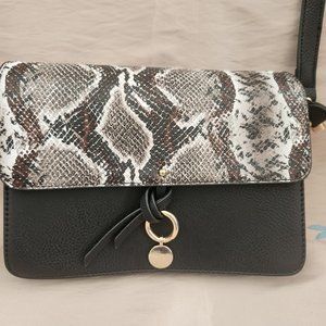 NEW with Tags GUSSACI Collection Vegan Leather Shoulder bag Piton Print/Black base, gold tone hardware, measures: w-9.5", H-7", depth-4", adjustable long strap drop, 3 compartments 9 a lot of space in spite of small size).