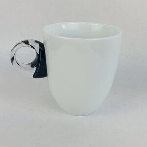 GUZZINI Feeling Mugs Porcelain Black Acrylic Handle Set x 4 Coffee Cup Italy Mod