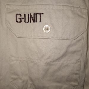 This is a G-Unit heavyweight short sleeve shirt with unique embroidery. Features button-up front and chest pockets. 100% cotton. Stylish and versatile.