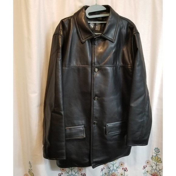 In new without tags condition. Laid flat from pit to pit it measures 23", arm from pit to wrist is 17" from shoulder to wrist is 25" across shoulders is 21" from shoulder to hem is 33" very soft leather